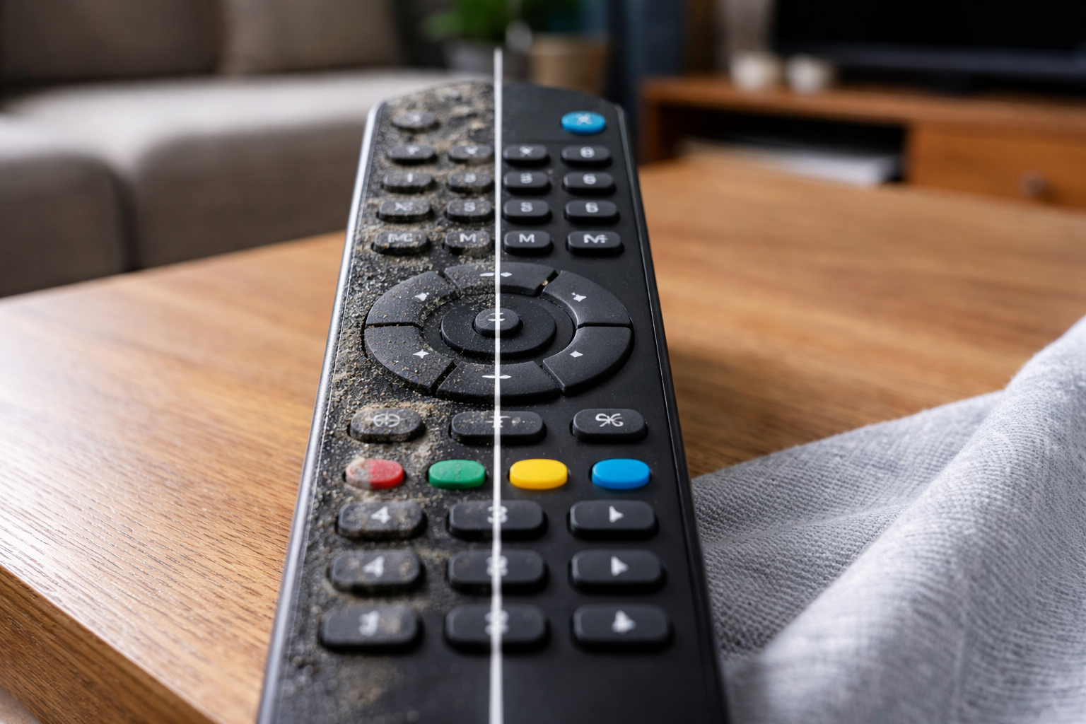 Всеки път, когато сменяте канала по време на вечеря или филм, върху пластмасата остават микроскопични следи. С течение на времето този незабележим филм се превръща в плътен слой мръсотия, който служи като идеална среда за размножаване на болестотворни микроорганизми. Следните компоненти най-често се отлагат върху повърхността на пластмасата и каучука: