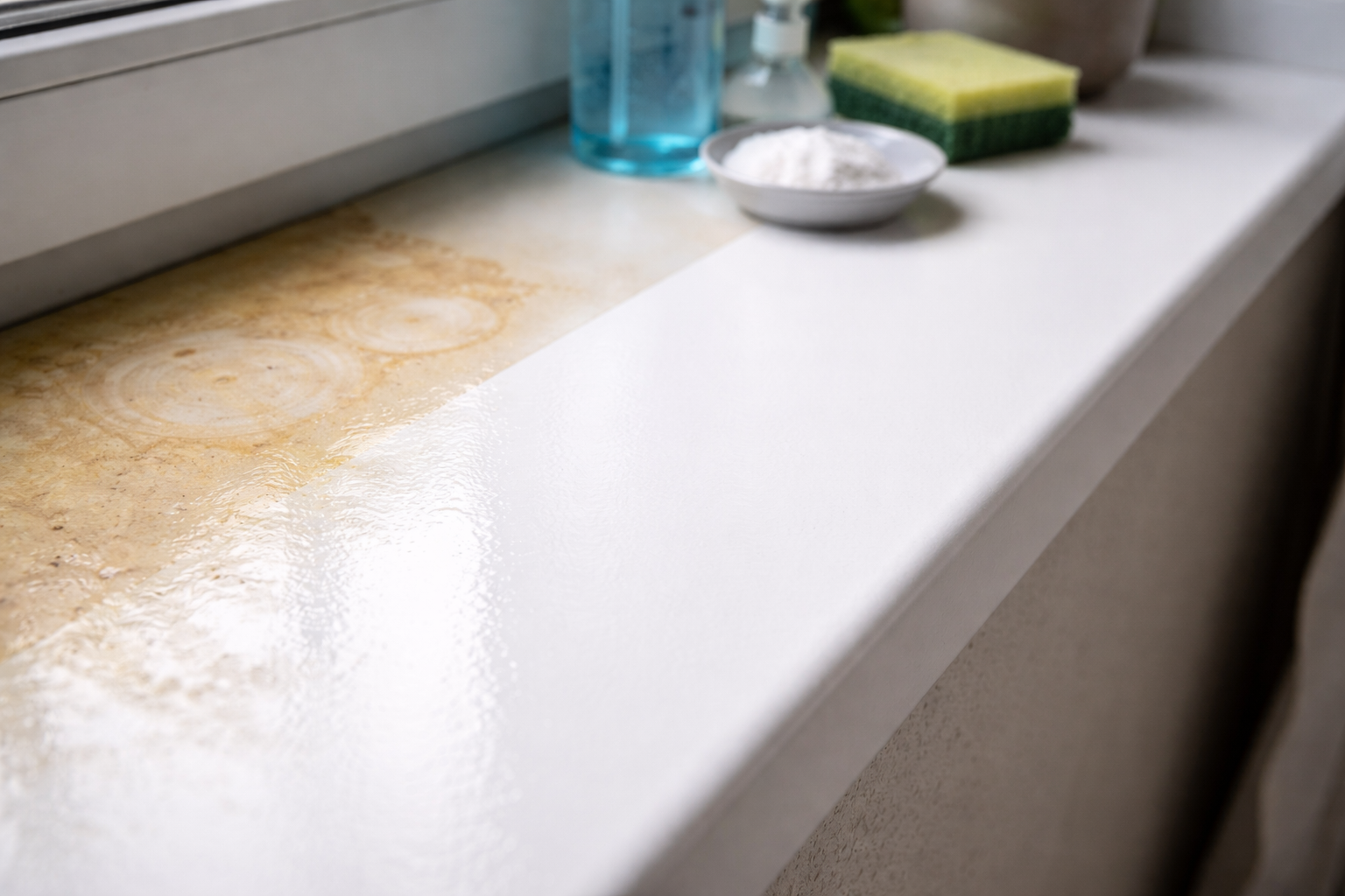 Жълтите петна, вграденият прах и следите от саксии с цветя могат да съсипят външния вид дори на най-новите пластмасови прозорци. Забравете за дългото търкане с твърди гъби, има изпитан метод, който ще възвърне перфектната белота на первазите ви без много усилия.
