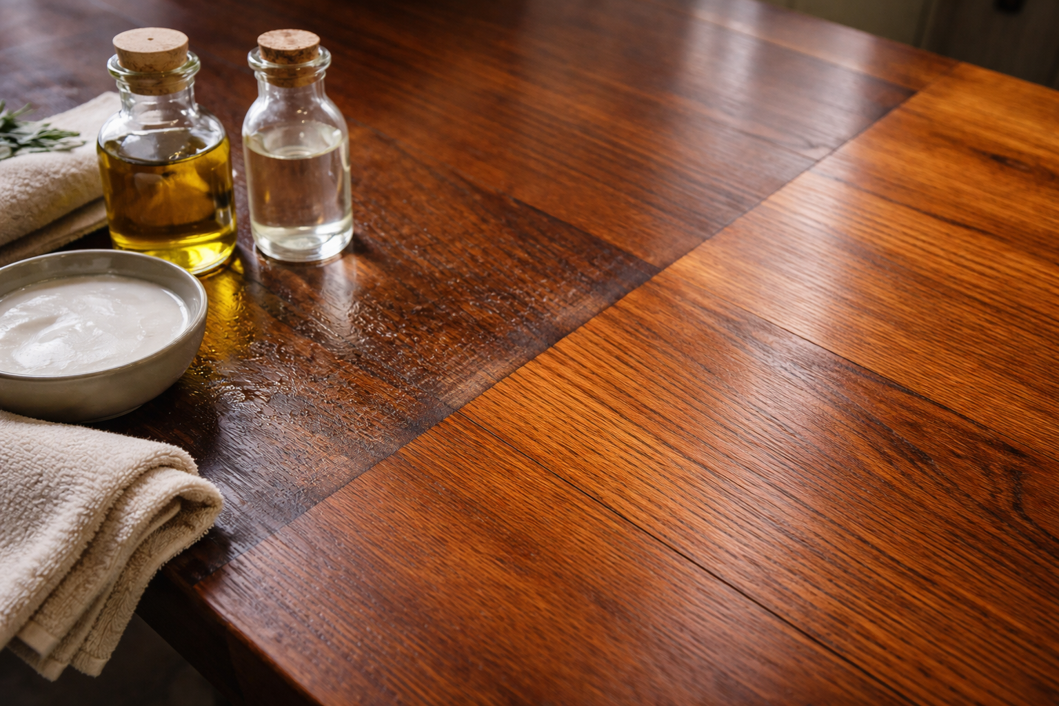 Смес от трапезен оцет и зехтин за дълбоко почистване и подхранване.