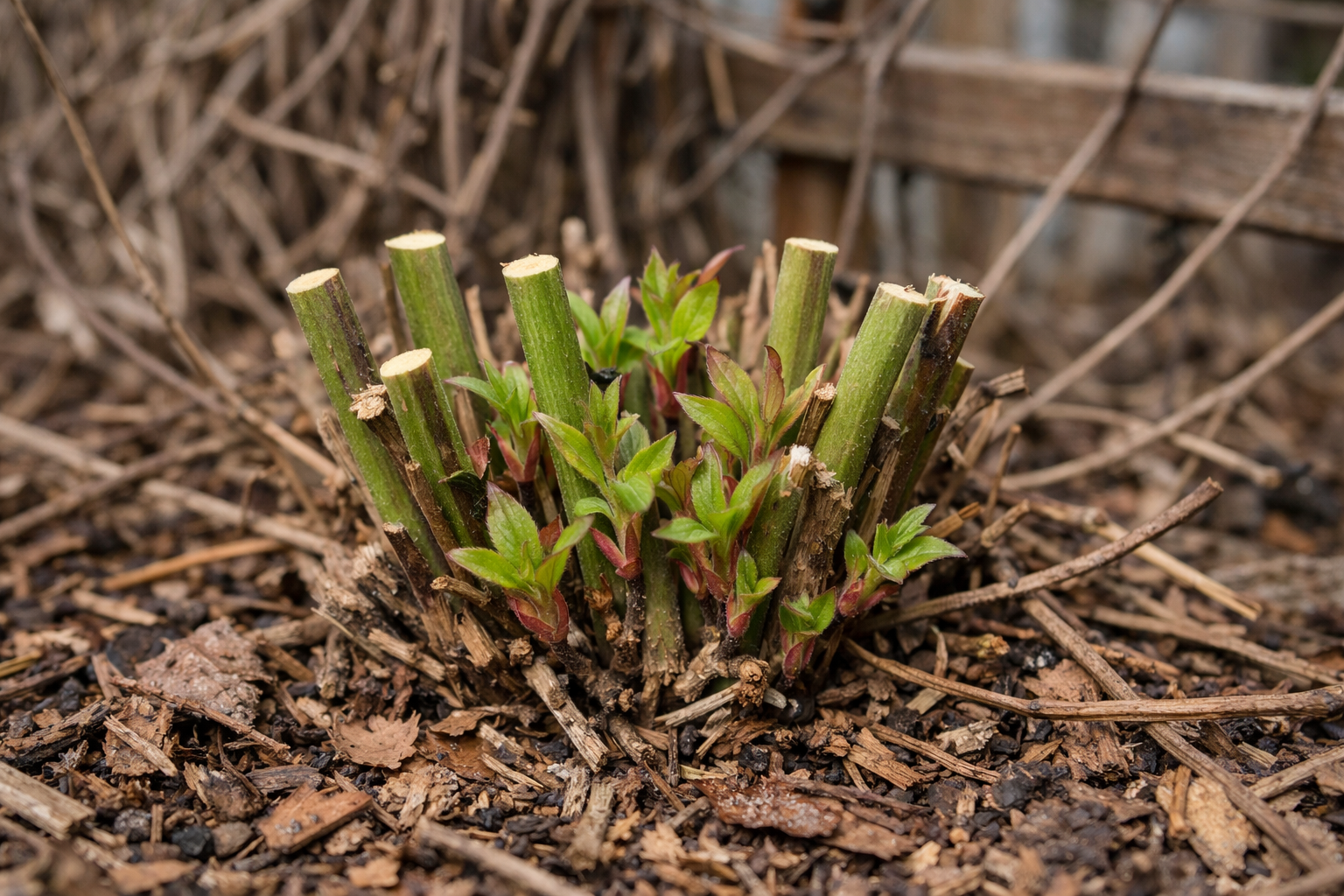 Съкращаване на здрави стъбла, за да се събудят страничните пъпки.