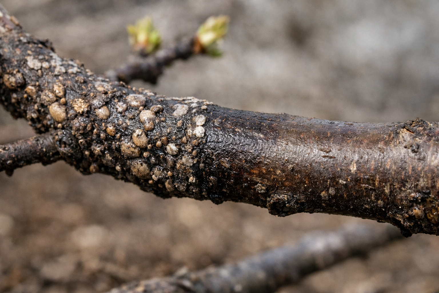 Такива повредени клони трябва да се изрежат без съжаление до здрава, светла тъкан и незабавно да се унищожат в огън далеч от насаждението.