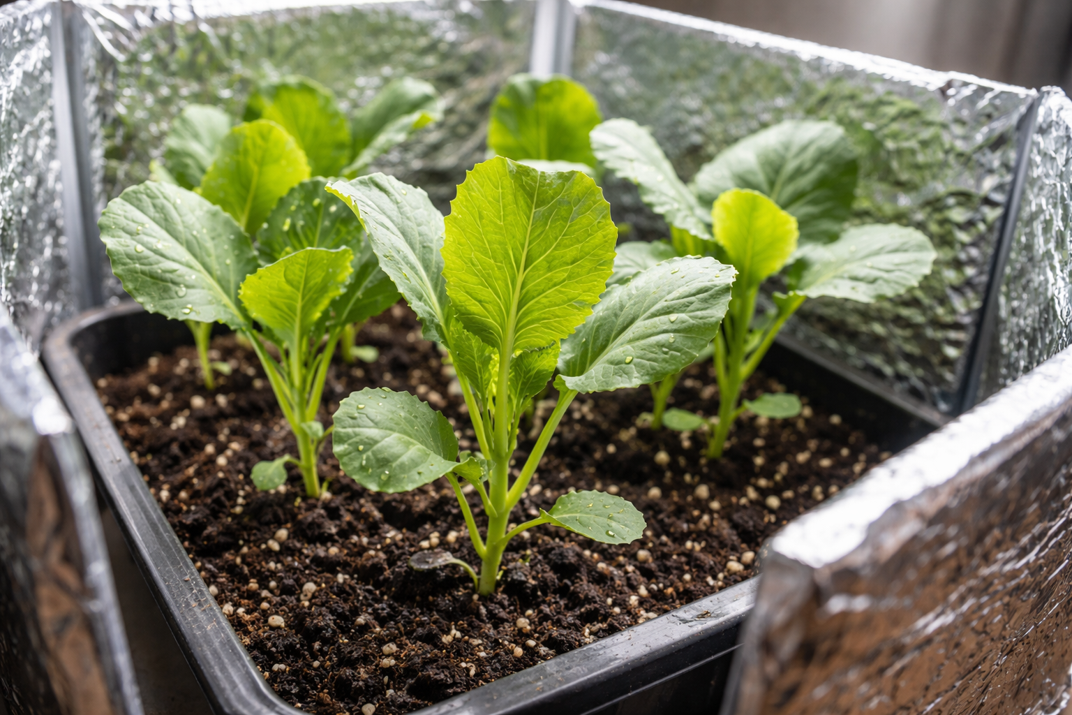 Монтирайте екрани от отразяващо фолио около контейнерите, за да увеличите максимално достъпните лъчи.