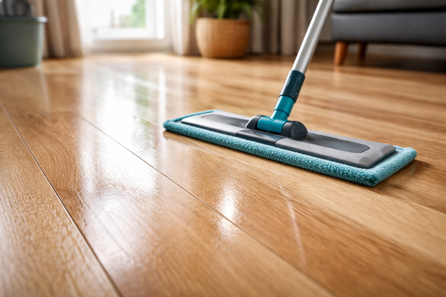 Тайна: винаги почиствайте пода по посока на ламината или паркета, а не напречно на дъските, за да избегнете видими следи от власинки и ръбове на парцала.