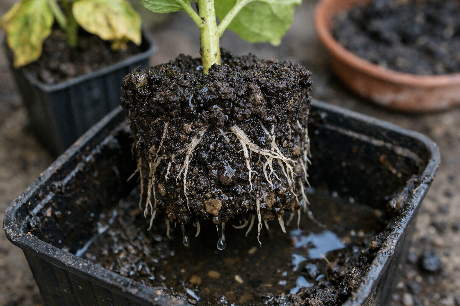 Тайният нюанс е, че патладжаните мразят студените первази на прозорците. Ако почвата е студена, корените спират да изпомпват влагата нагоре, създавайки илюзията за суша при напълно влажна почва.
