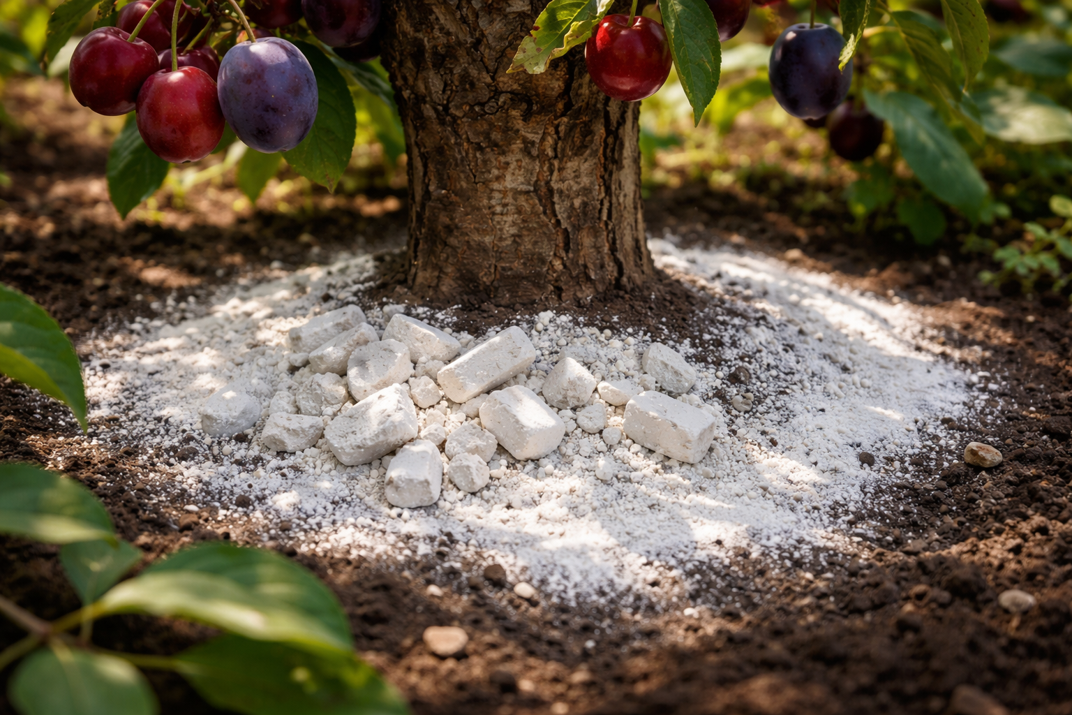 Много градинари се сблъскват с факта, че костилковите дървета цъфтят обилно, но след това масово пускат яйчници. Проблемът най-често се крие в повишената киселинност на почвата и дефицита на калций, който е необходим за образуването на семената. Това може да се реши с обикновена креда, която действа нежно, бързо и връща на растенията способността за пълноценно плододаване.