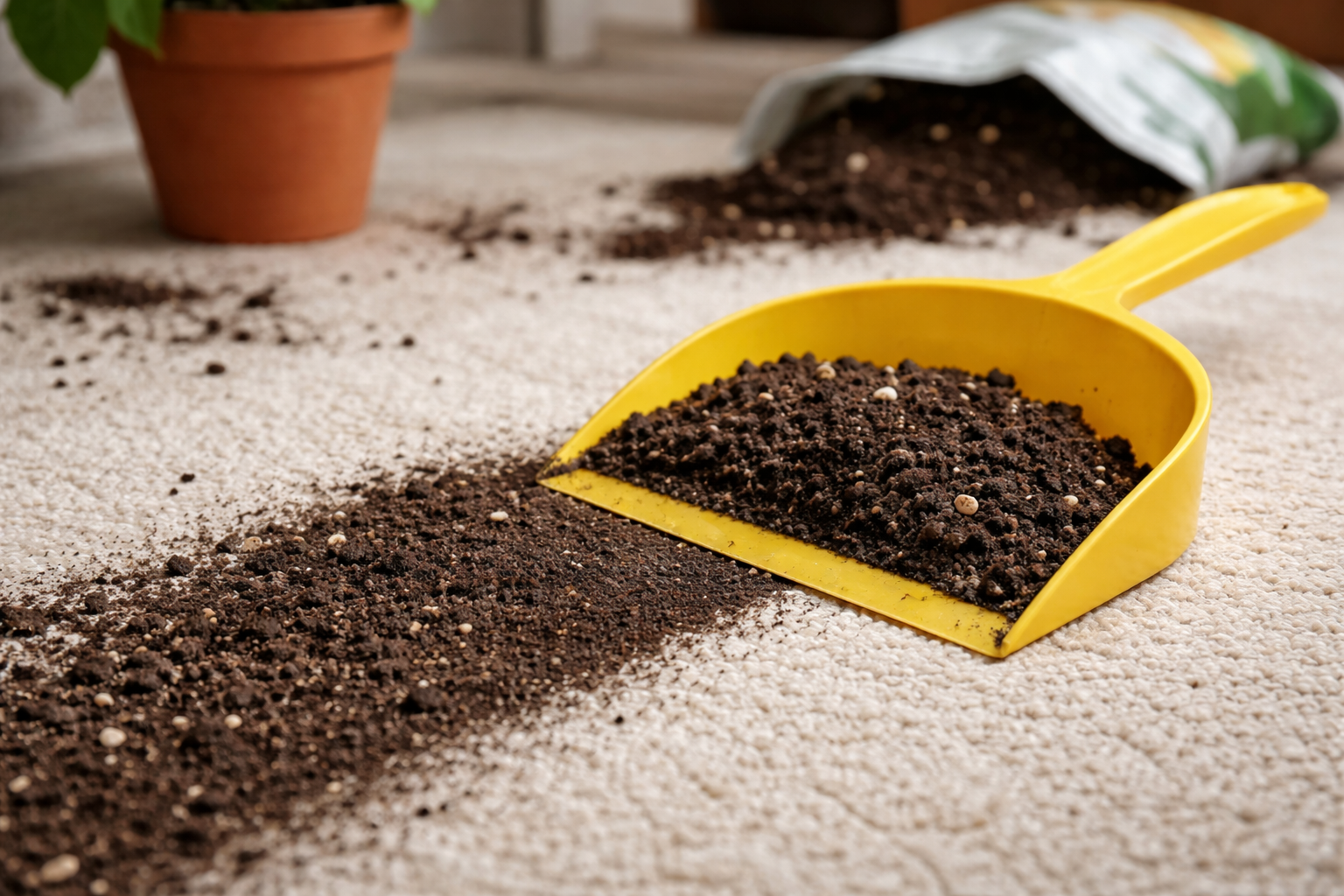 Пресаждането на любимо стайно растение често завършва с неприятна ситуация, когато тъмна почва покрие светъл килим или чист ламинат. Позната е гледката, когато ръката ви автоматично посяга към прахосмукачката или влажната кърпа, но тези инструменти само размазват мръсотията и забиват фините частици дълбоко в купчината. Съществува един невероятно прост и безопасен метод, който завинаги ще промени начина, по който подхождате към почистването на такива специфични замърсявания.