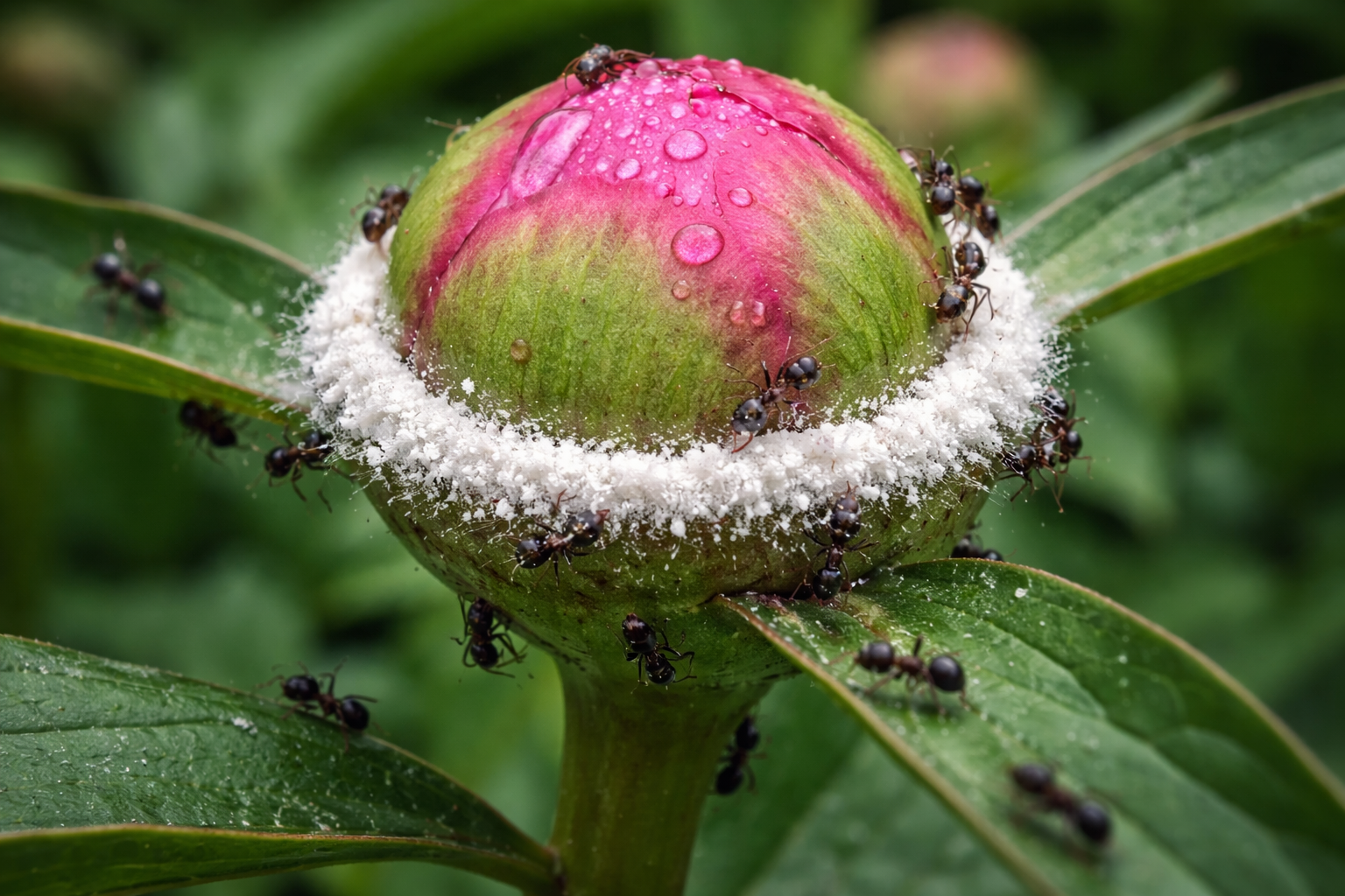 Мравките не ядат венчелистчетата и листата, те са привлечени единствено от хранителния сироп, но могат да внесат акари или да повредят горния слой на пъпката, като я деформират.
