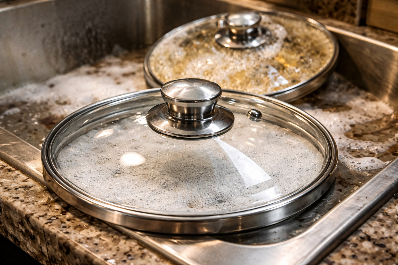 Лепкавите жълти отлагания по стъклото и под ръба са досадни всеки път, когато готвите, а стандартните гелове за миене на съдове само размазват тази мръсотия. Прекарах много време в тестване на различни препарати и открих перфектното съотношение на домашните средства, което разбива многобройните слоеве лепкави наслоявания само за минути.
