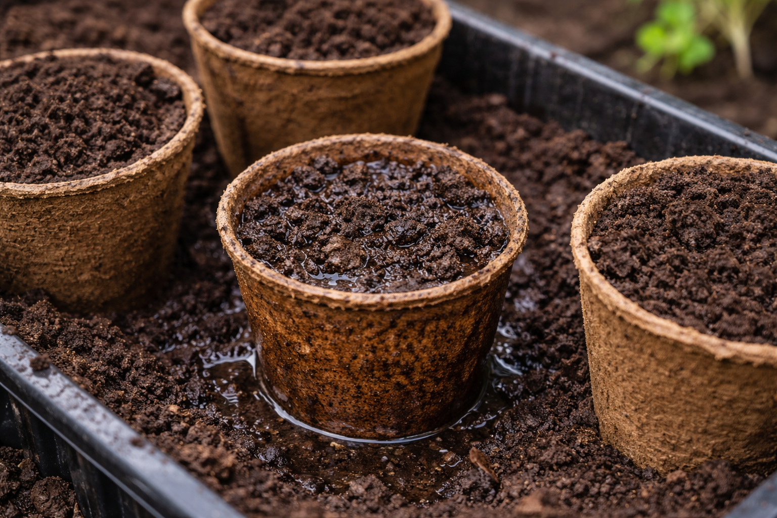 Много начинаещи правят фаталната грешка да напълнят сух контейнер с почва. Порестите стени са силно хигроскопични и моментално изтеглят цялата влага от почвената смес, оставяйки семената в пустиня.