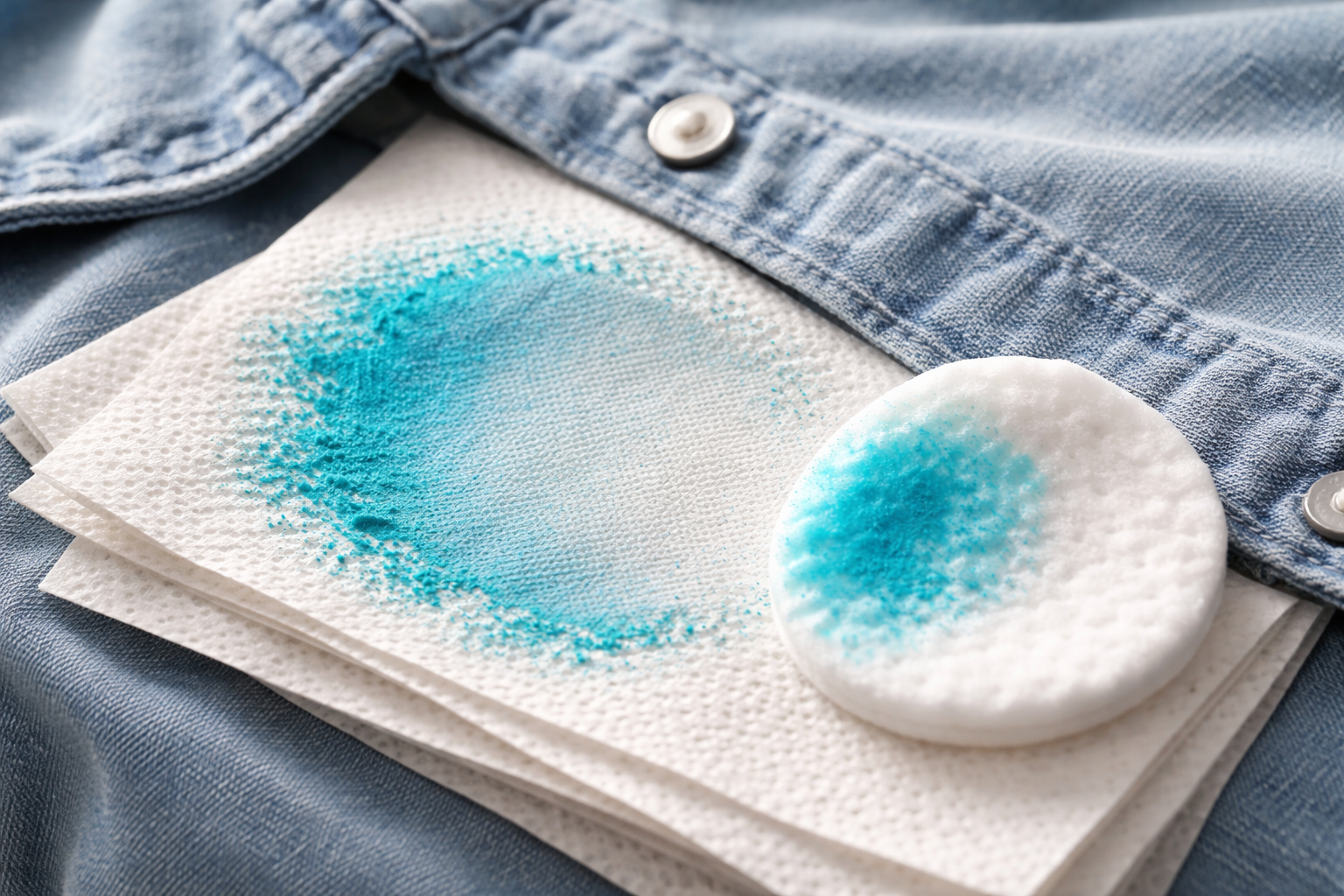 Агресивното механично триене само задвижва цветните частици по-дълбоко в структурата на тъканта, затова е по-добре да използвате нежни движения на забърсване.