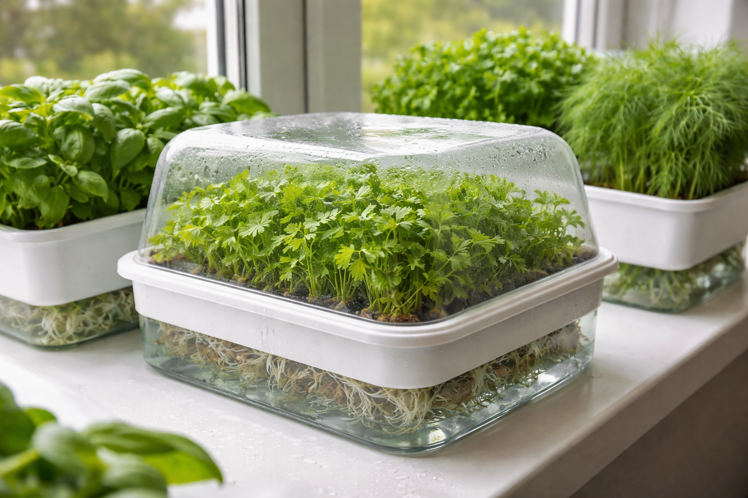 Тайната на успешния растеж се крие в създаването на парников ефект през първите дни на засаждането. Просто покрийте контейнера с фолио или прозрачен капак, докато се появят първите зелени листенца, за да създадете идеалния влажен микроклимат.