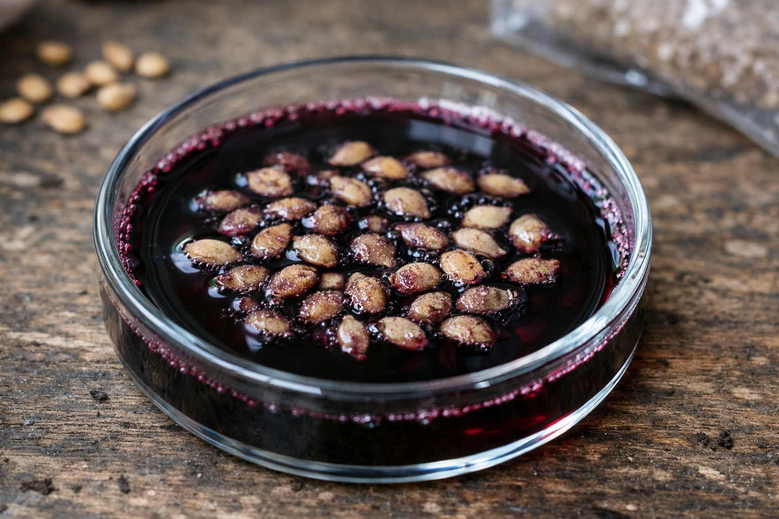 Никога не изпращайте сухите семена веднага в корозивна среда. Не забравяйте първо да ги оставите да набъбнат в чиста, влажна кърпа за няколко часа, в противен случай просто ще изгорите деликатните зародиши.
