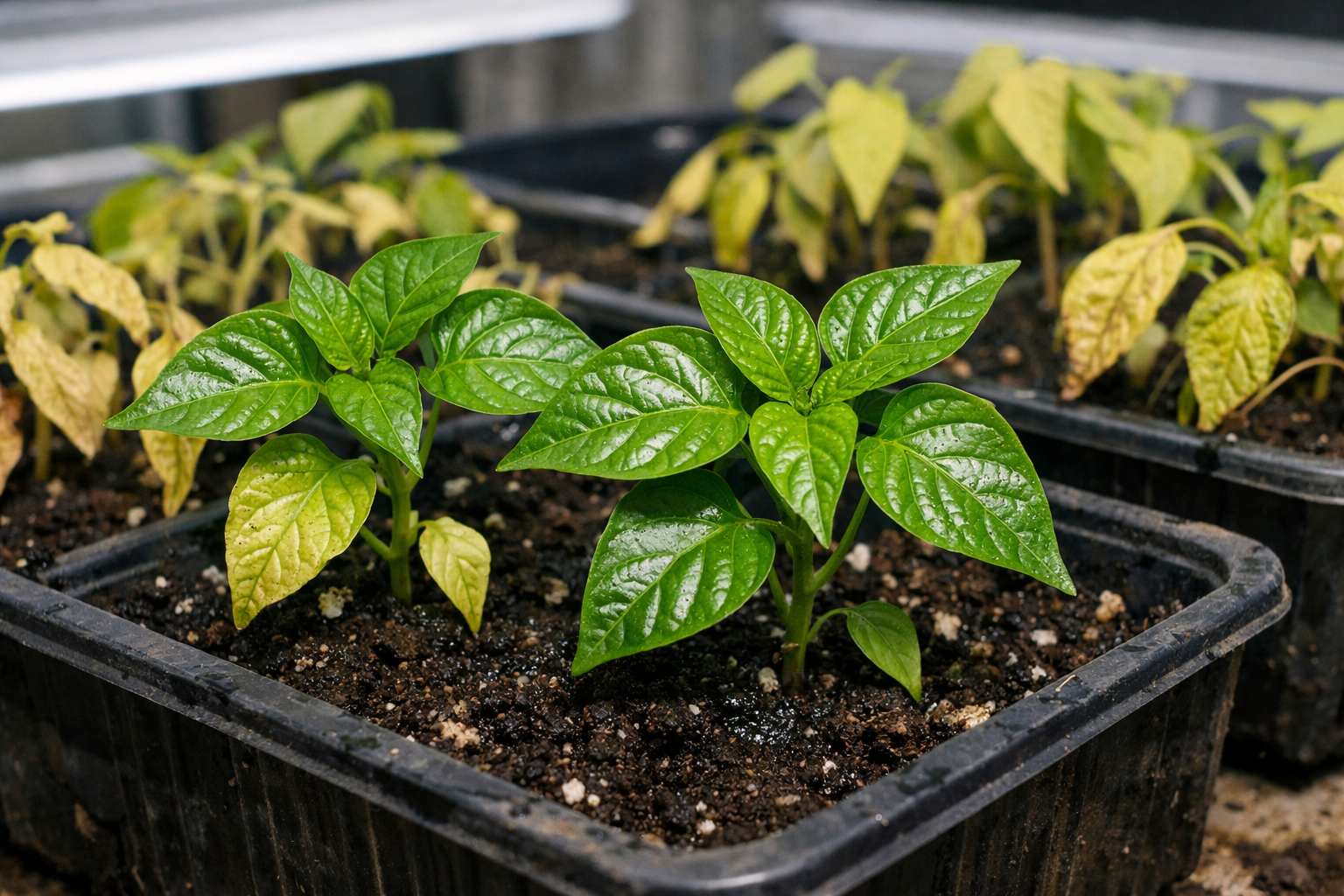 Първото правило за съживяване на бледите разсади е да се стабилизира микроклиматът. Много градинари правят грешката да се опитват да „подхранват“ пожълтелия пипер с азотни торове. Без светлина кореновата система просто не е в състояние да усвои тези елементи, което води до засоляване на почвата.