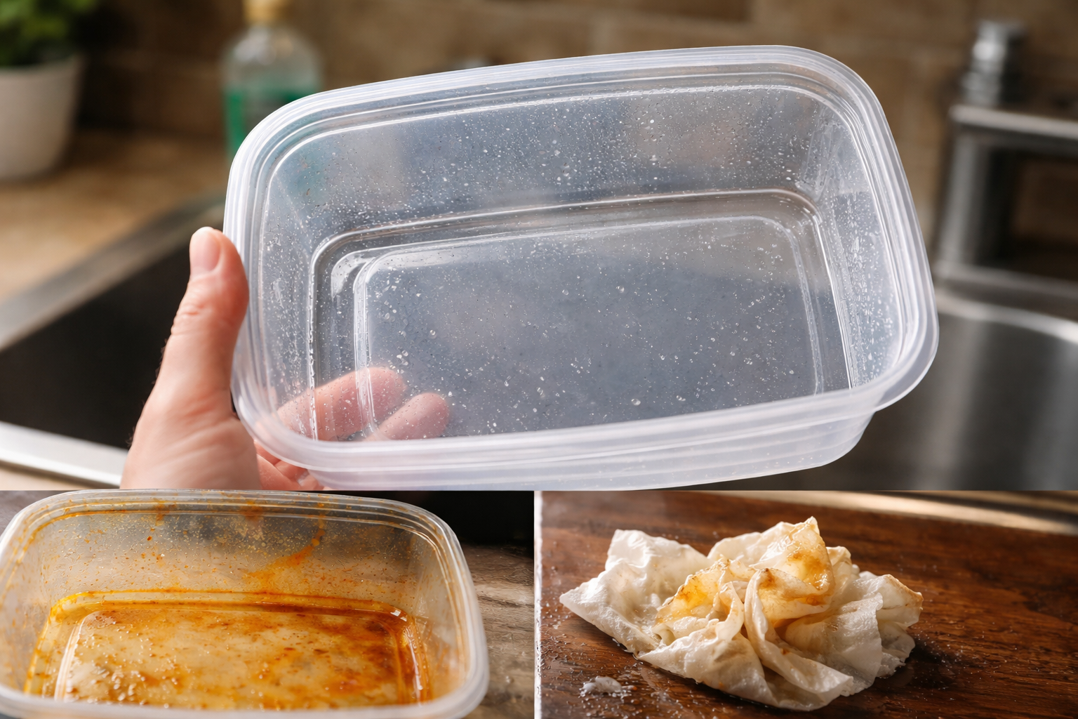 Съвременни храна пластмаса има микроскопични пори. Когато влязат в контакт с топла храна, те се разширяват и буквално поглъщат храната в себе си. устойчива мазнина и оцветяващи пигменти. Когато се опитаме да почистим контейнера с обикновена гъба, само размазваме мръсотията по повърхността, без да проникваме в структурата на материала.