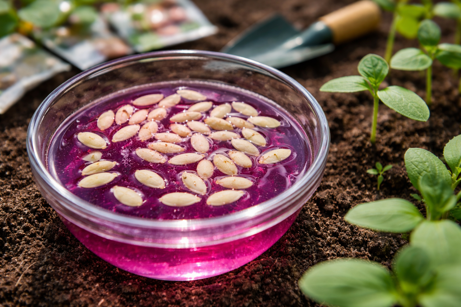 Калиев перманганат действа като мощен окислител и антисептик. Той буквално изгаря обвивките на патогенните бактерии точно на повърхността на семената, преди те да попаднат в почвата.