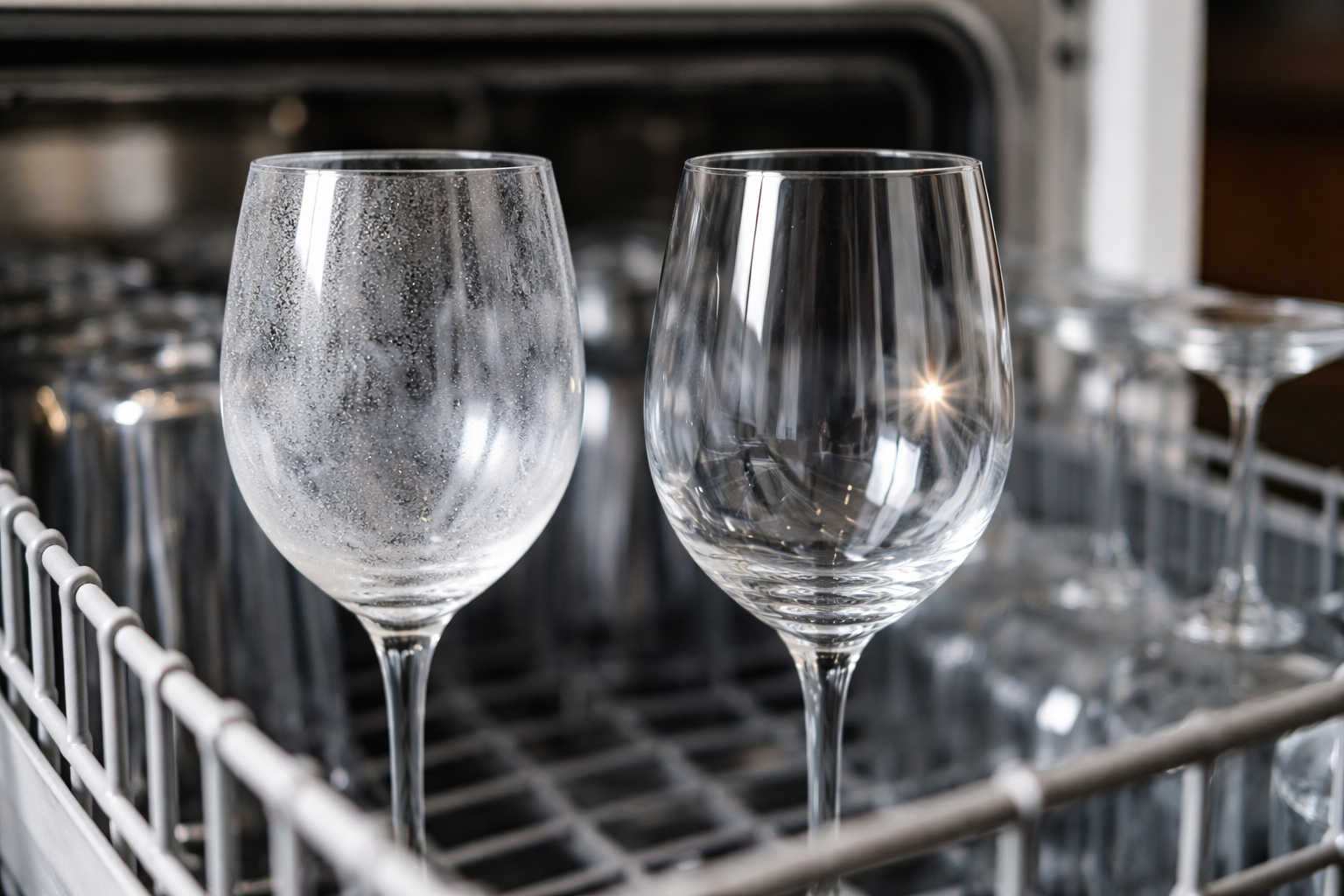 Правилната грижа за кухненските прибори изисква само малка представа за химията на процеса и познания за качеството на вашата чешмяна вода. Единственото, което трябва да направите, е да регулирате еднократно дозата на омекотителите и да изберете подходящия киселинен неутрализатор. Съдовете ви ще бъдат идеално чисти и прозрачни всеки ден.