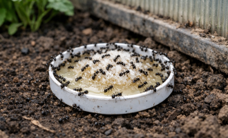 Важно е не само да разпръснете получената течност върху земята, но и да я приложите компетентно. Разпределете гъстата маса върху плоски пластмасови капаци и я поставете в близост до основните пътища на вредителите. Самите насекоми-работници ще пренесат отровната храна дълбоко в домовете си и ще нахранят партньора.