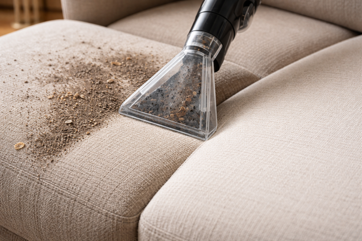 Редовното почистване на шевовете с тесния накрайник предотвратява скъсването на нишките и запазва формата на мебелите.