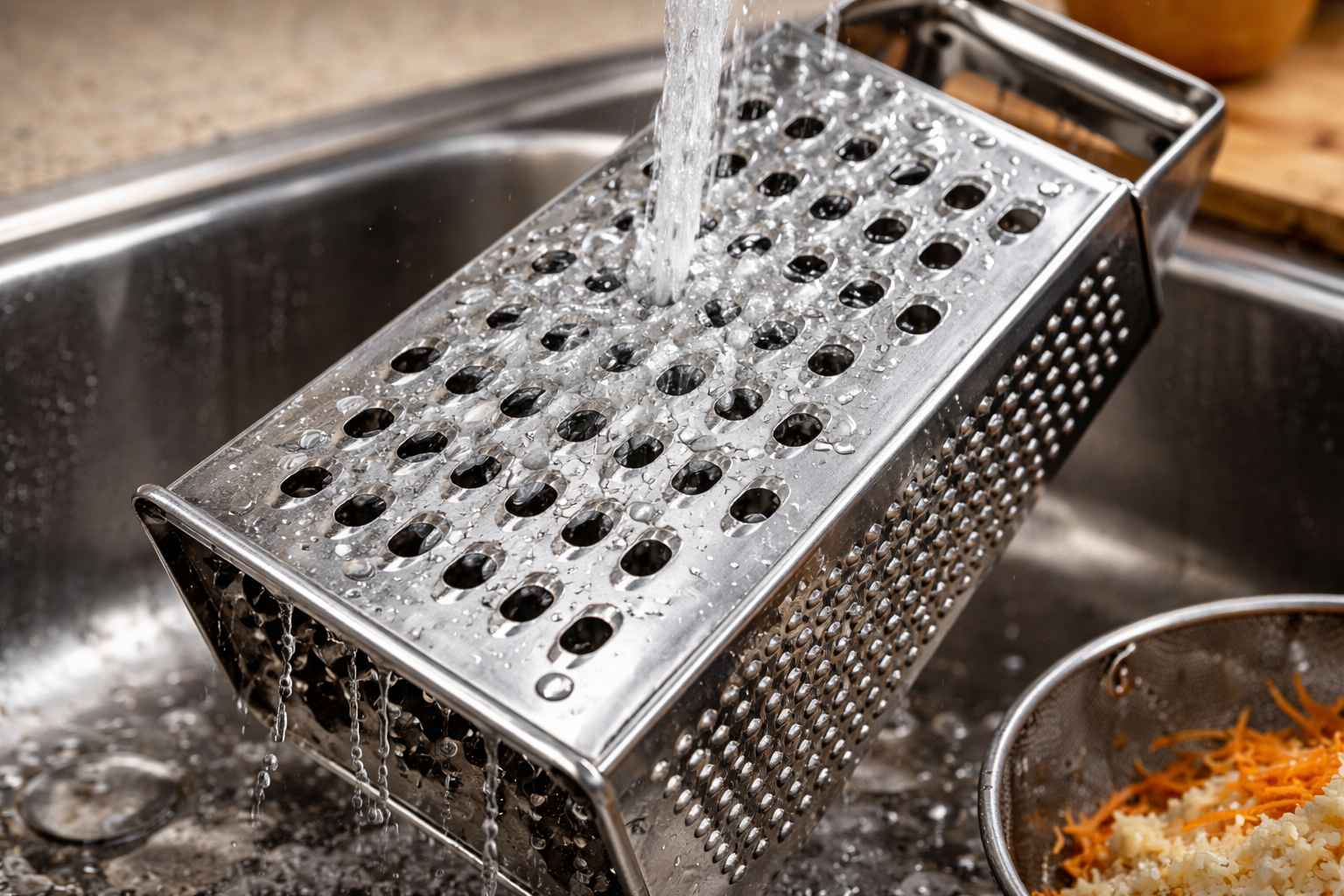 Измиването на рендето веднага след употреба е златно правило, но дори и това невинаги ви спасява от засъхнали остатъци от сирене или влакна от моркови в труднодостъпните отвори. Обикновената гъба моментално се превръща в парцал, а пръстите рискуват да се порежат дълбоко върху металните остриета. Тествах десетки народни методи и открих самия алгоритъм, който премахва всяка мръсотия без капка пот и излишни движения.