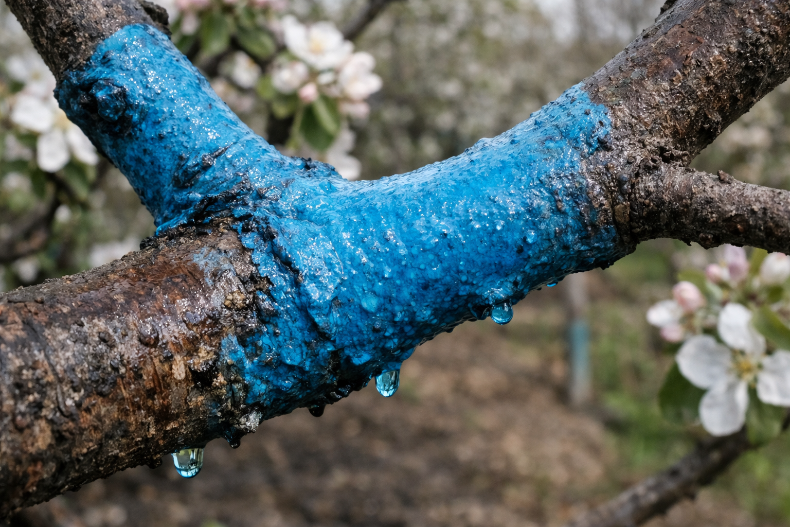 Унищожава зимуващите спори на патогените Parschia върху кората.