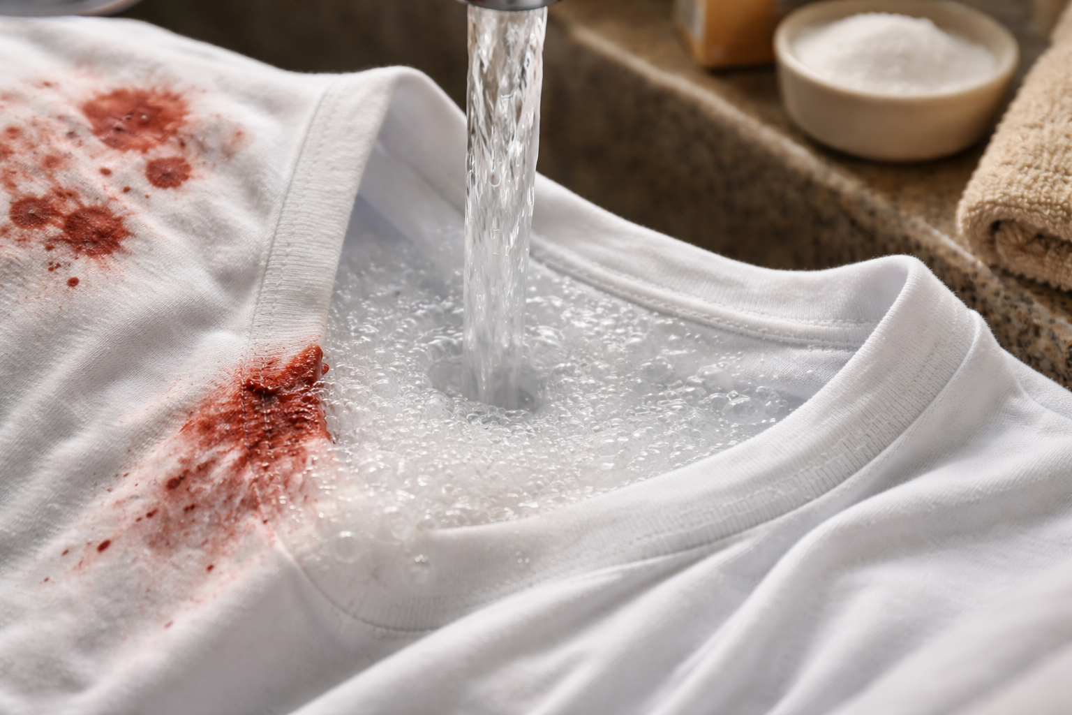 Основното правило за отстраняване на кръв е да се използва само студена вода, тъй като високата температура заварява трайно белтъка направо във влакната, превръщайки го в неизтриваемо багрило.