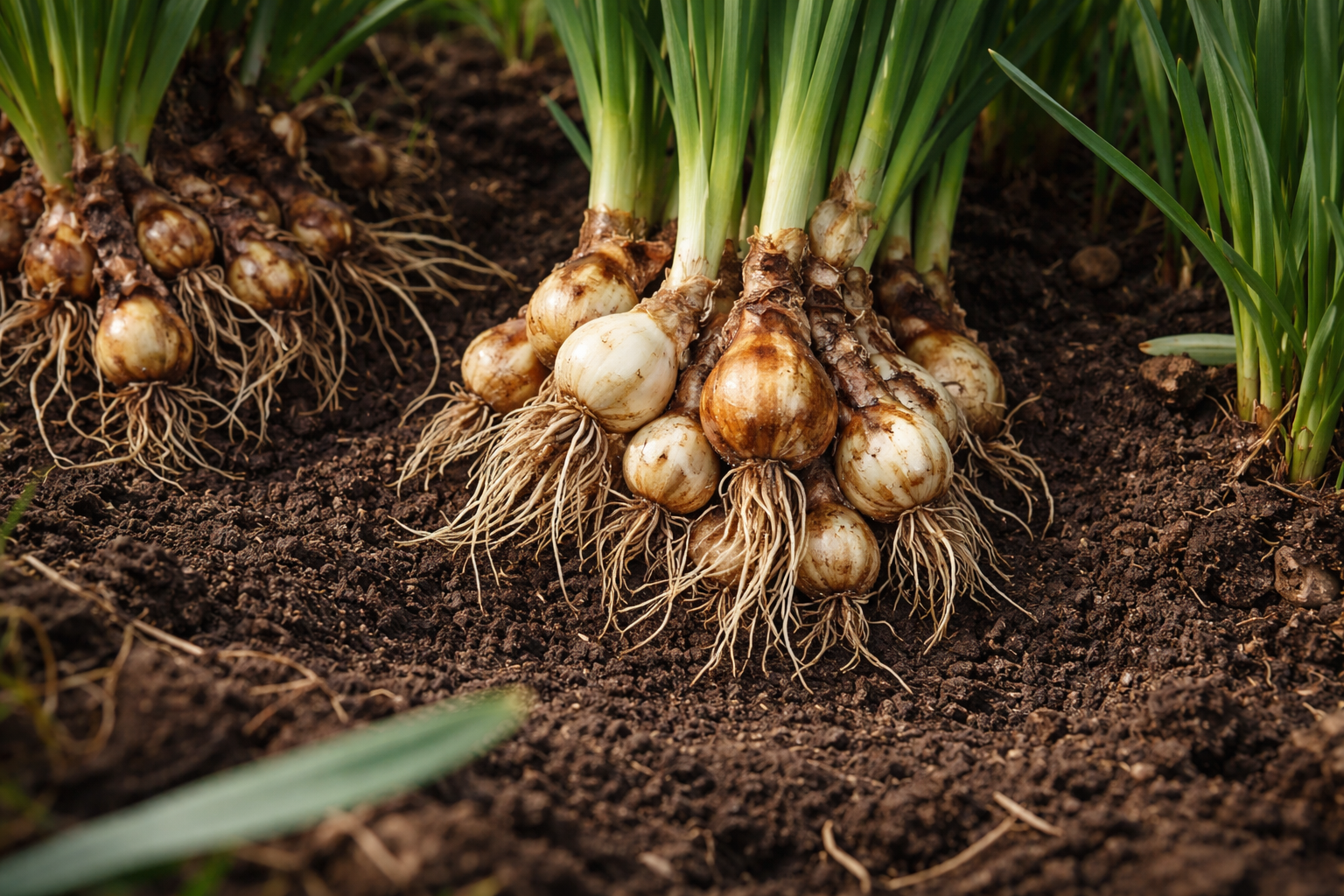 Луковици, стърчащи към повърхността на почвата