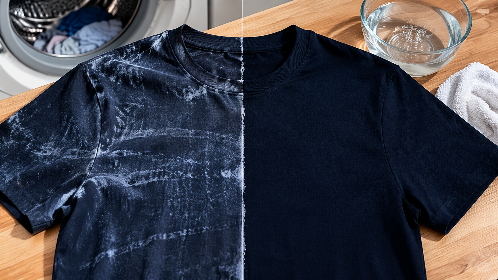 Ситуацията е позната – изваждате дрехите си от пералнята и тъмната ви тъкан е покрита с белезникави ивици или лепкави петна от гел за пране. Тези петна от самите перилни препарати са по-досадни от обикновената мръсотия, но аз знам един гарантиран начин да възвърнете перфектния вид на тъканта си, без да се налага да се мъчите и да отнемате време за повторно изпиране.
