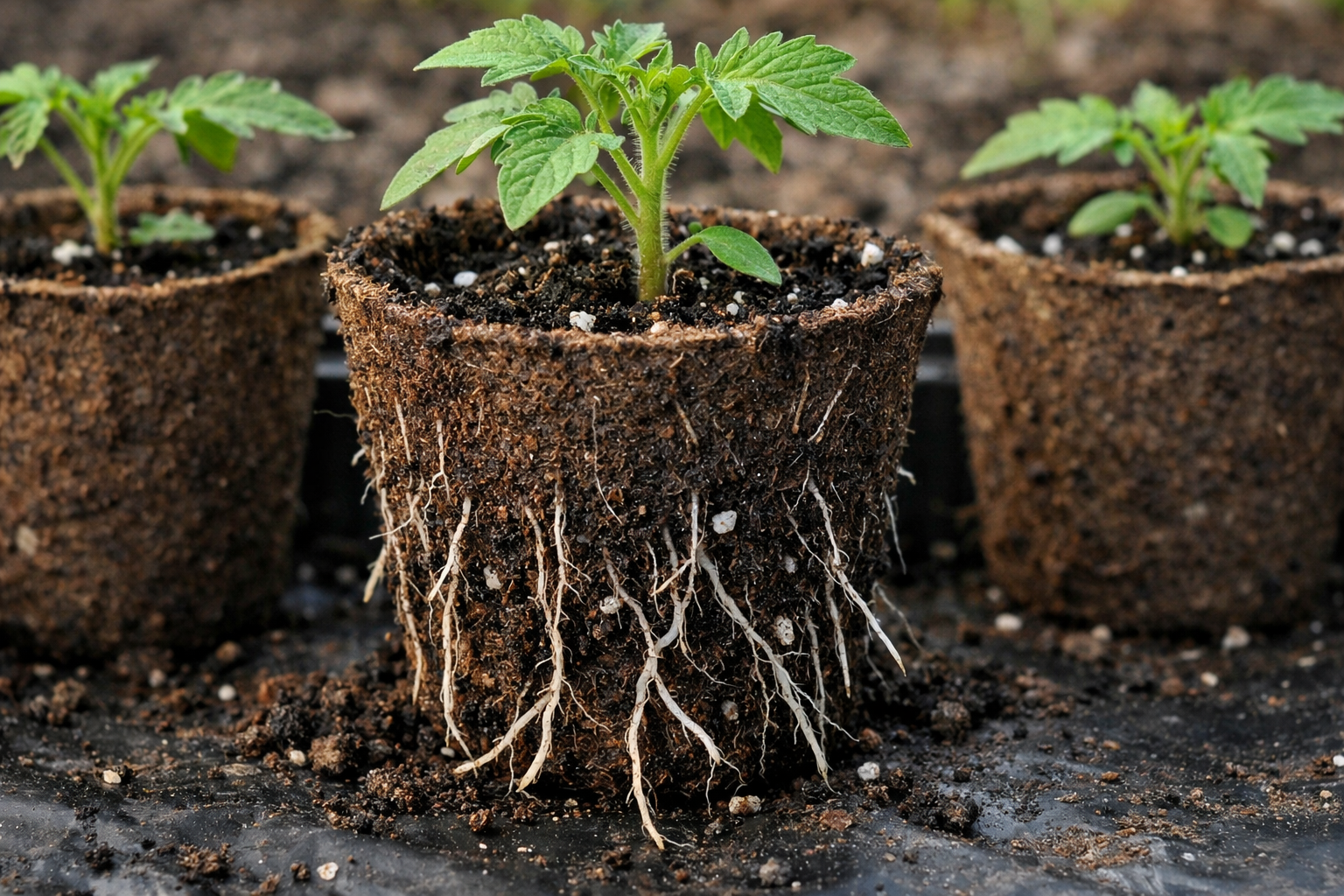 Здравословен коренова система на доматите изисква постоянен достъп до кислород и липса на застояла влага. Пластмасовите контейнери често предизвикват парников ефект на дъното, което води до загниване на корените. Естественият компресиран материал за стени действа по различен начин, като позволява на земната кома да диша свободно.