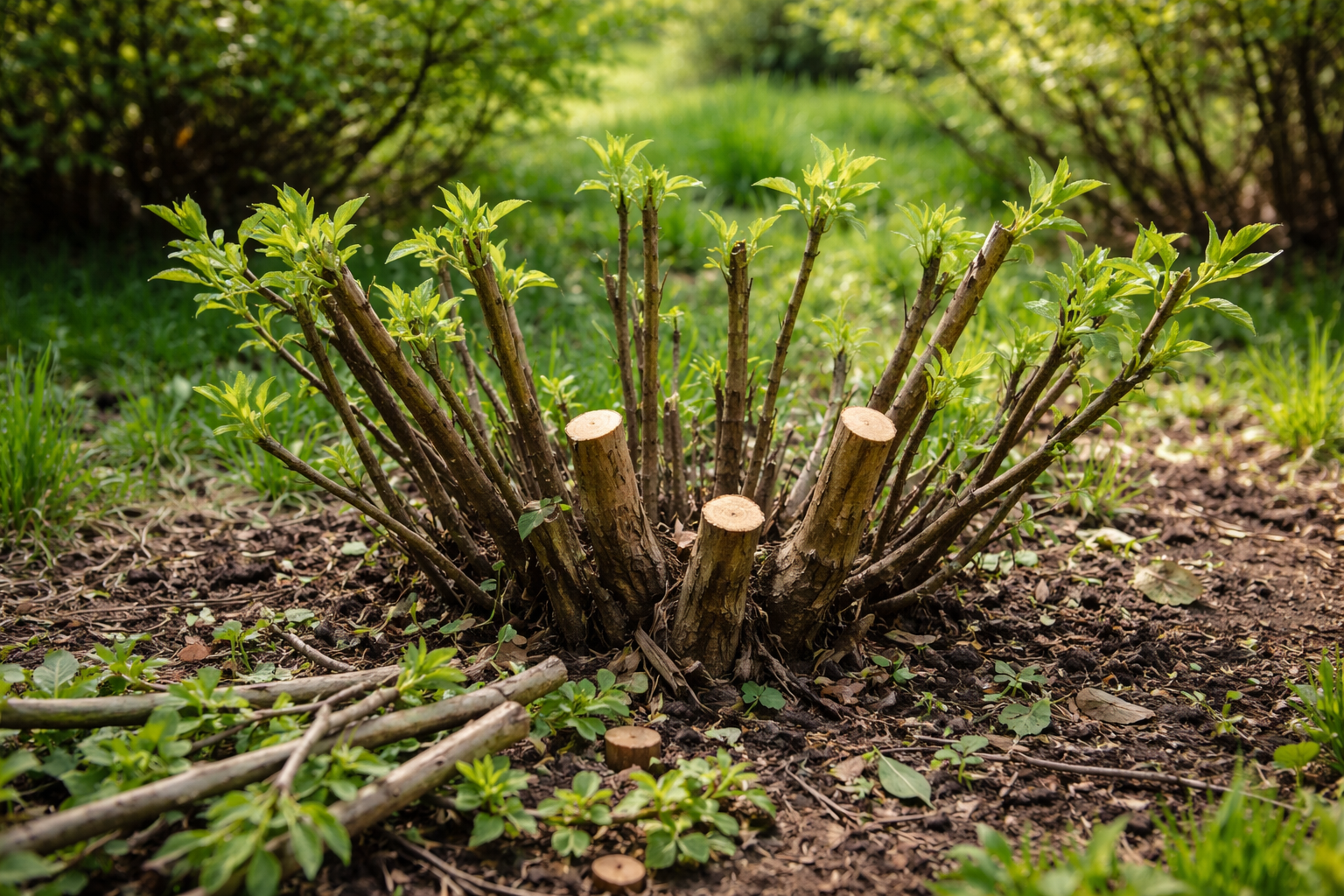 Основната тайна се крие в пълното отстраняване на старите скелетни клони в самата основа, което принуждава храста да изкара мощни млади заместващи издънки от кореновата шийка.