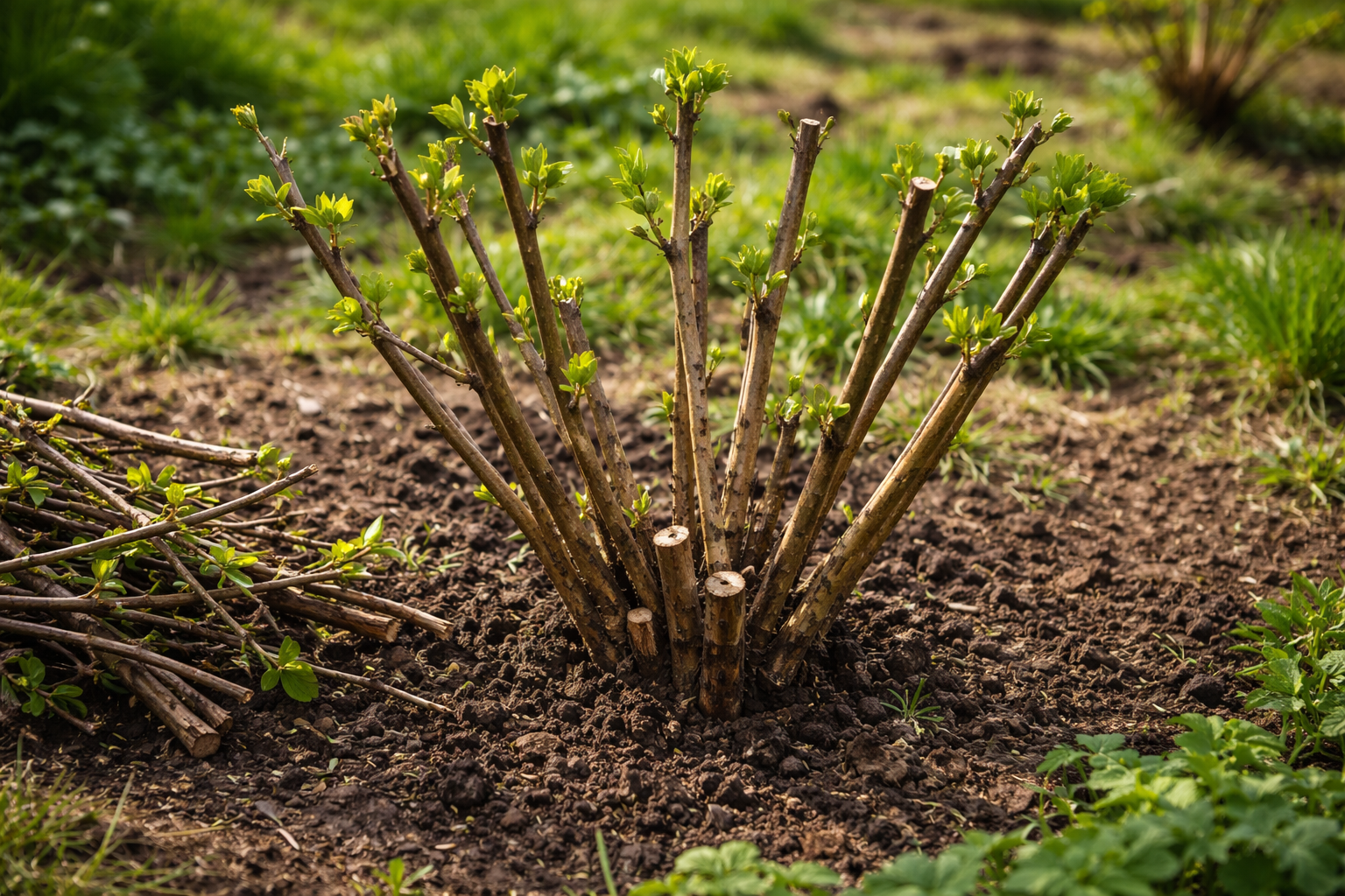 Оставете няколко от най-силните нулеви леторасти на храста за бъдеща подмяна на старите стволове.
