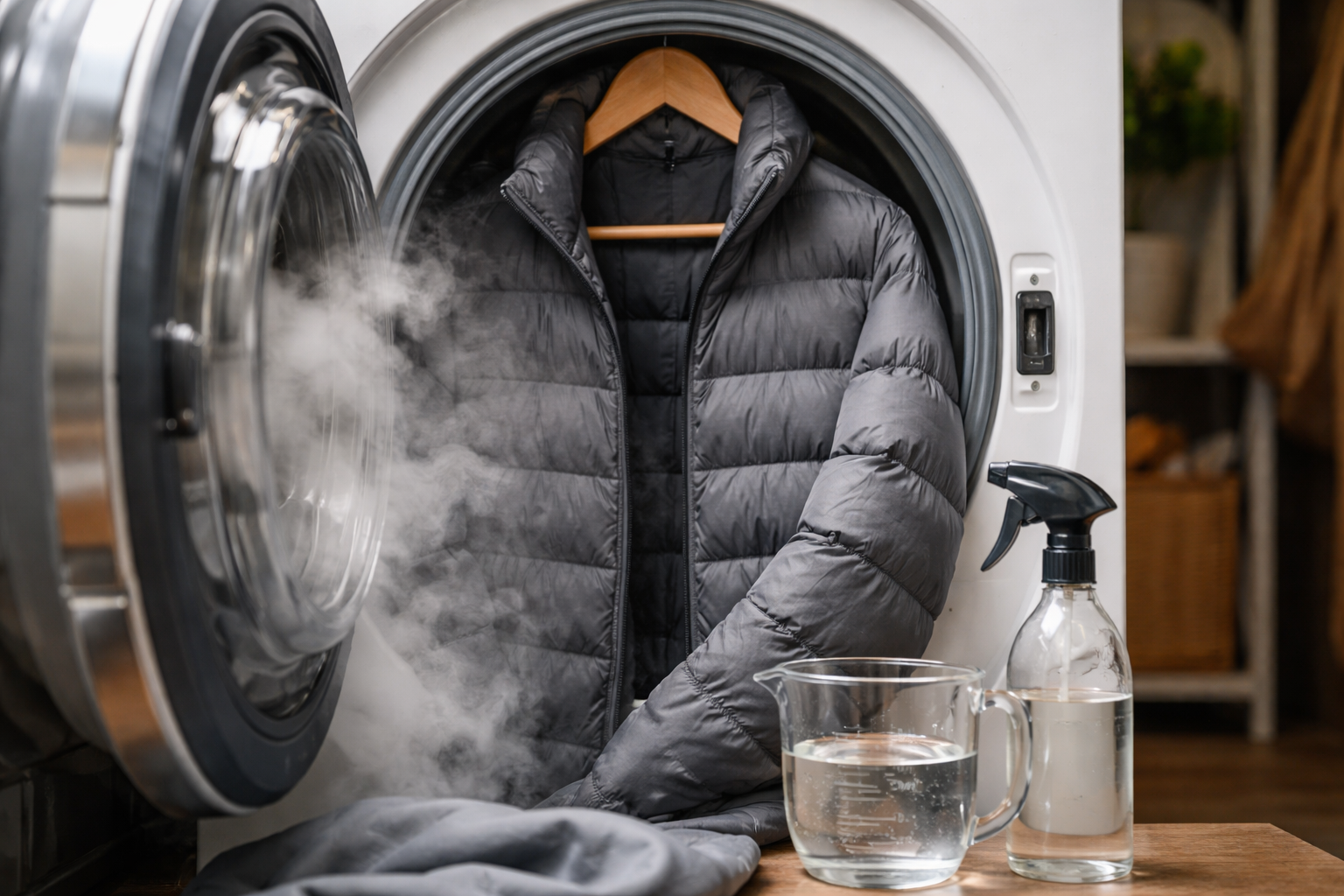 Моят най-секретен нюанс е да използвам гореща пара и бял трапезен оцет. Парата разкрива влакната на тъкантаа оцетът действа като мощно природно средство. неутрализатор на миризмикойто буквално извлича въглеродния оксид от материала. Просто налейте гореща вода във ваната, добавете чаша оцет и окачете предмета над парата за няколко часа при затворена врата.
