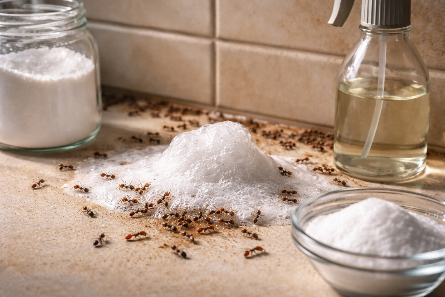 С настъпването на първите горещини тези малки нежелани гости моментално окупират кухненските шкафове и плотове, но аз открих абсолютно безотказно решение на проблема. Не е необходимо да тровите семейството и домашните си любимци с разяждащи промишлени аерозоли, защото обикновената кухненска сода, съчетана с трапезен оцет, гарантирано ще изчисти дома ви от насекомите само за няколко дни.