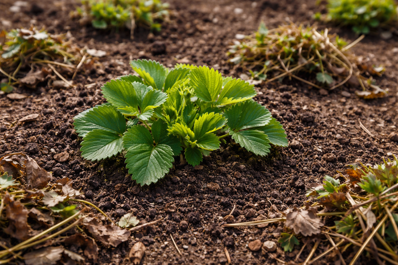 Когато коренова система на ягодата се е затоплила достатъчно под лъчите на пролетното слънце и е получила първоначалното си подхранване, голата земя трябва да се покрие. Подходящият мулч запазва ценната влага в сухите дни и предотвратява контакта на зреещите плодове с влажна почва.