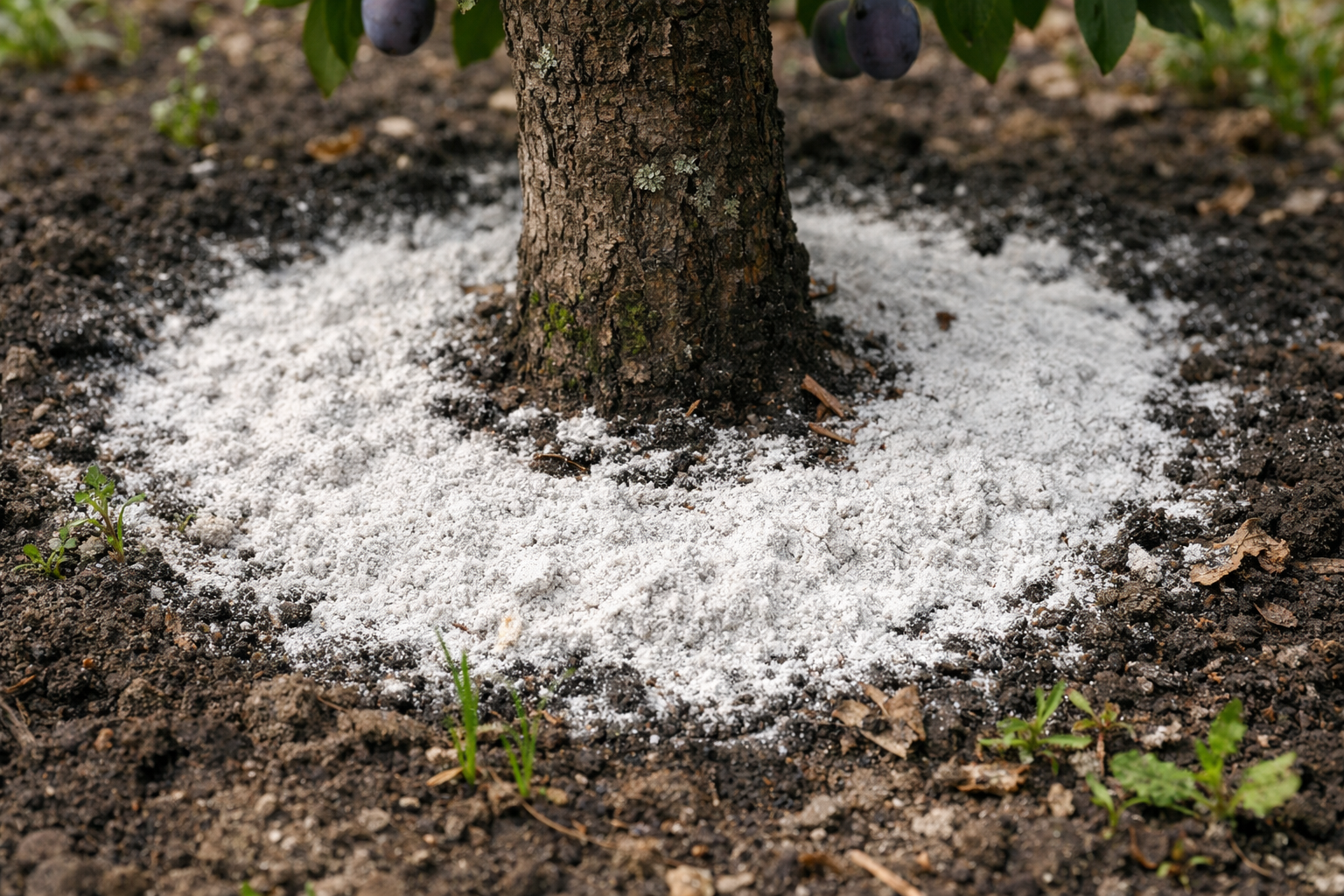 Разпределете продукта равномерно по цялата площ на проекцията на короната на дървото.