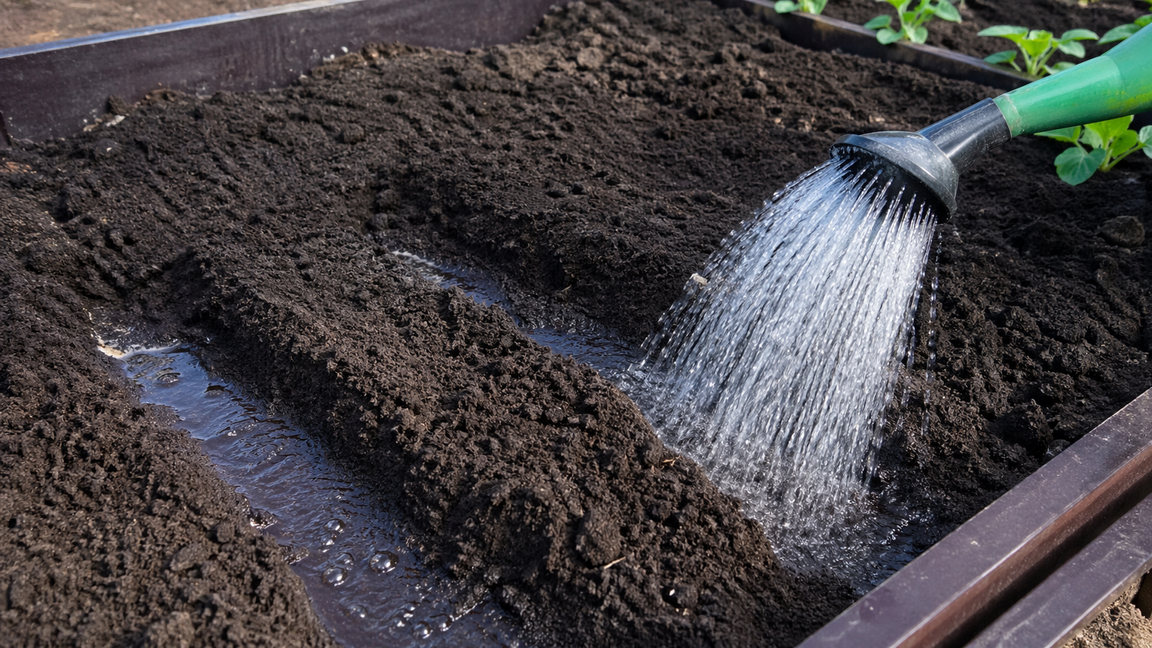 Най-ефективният начин за събуждане на семена е да използвате гореща вода. Преди сеитба заливам браздите с вода с температура около 50 градуса. Това не само затопля дълбоките слоеве на почвата, но и отмива от семената (особено от копъра и магданоза) етеричните масла, които възпрепятстват покълването.